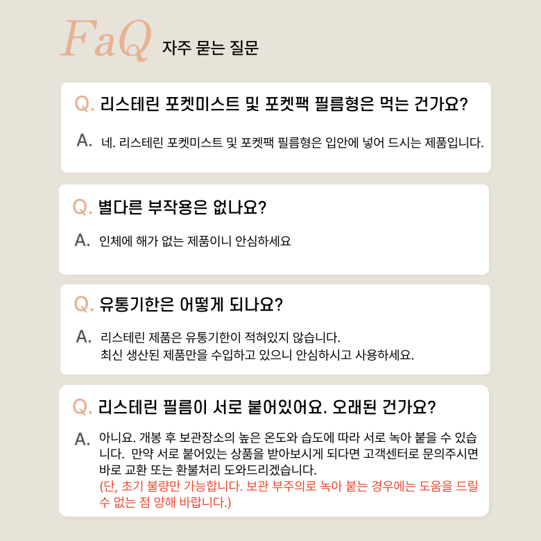 - 가격, 판매자, 교환/환불 및 배송 등 해당 상품 자체와 관련 없는 문의는 고객센터 내 1:1 문의하기를 이용해주세요.