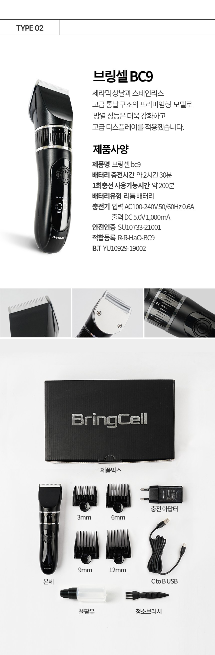 | 품명 및 모델명 | 이발기 / BC9 | KC 인증정보 | 본품: R-R-HaO-BC9 / 전지: YU10929-19002 / 어댑터: SU10733-21001, R-R-HgT-GA-0502000 |