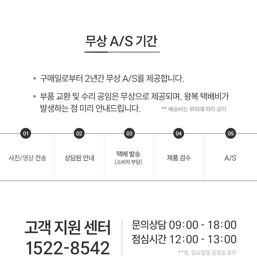 - ㆍ제조사의 사정 (신모델 출시 등) 및 부품 가격 변동 등에 의해 무료 교환/반품으로 요청하는 경우