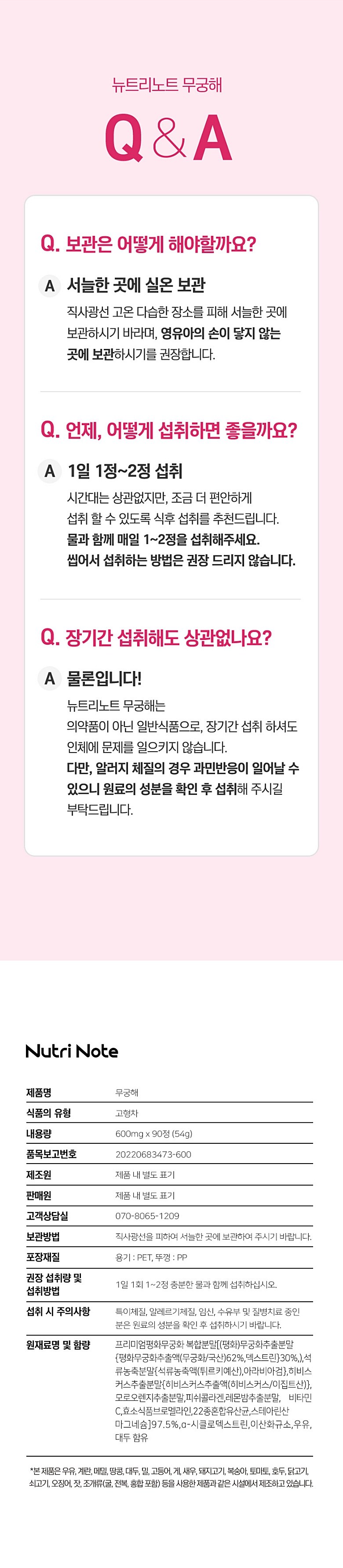 | 제품명 | 뉴트리노트 무궁해 | 식품의 유형 | 상품 상세페이지 참조 |