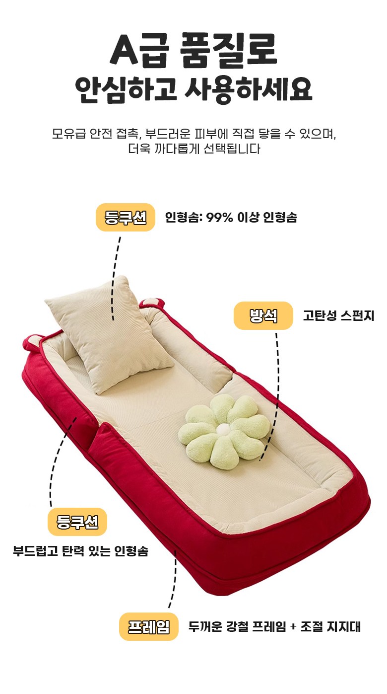 | 품명 | 하루꿈 각도조절 좌식 소파베드 | KC 인증정보 | 상품 상세페이지 참조 |