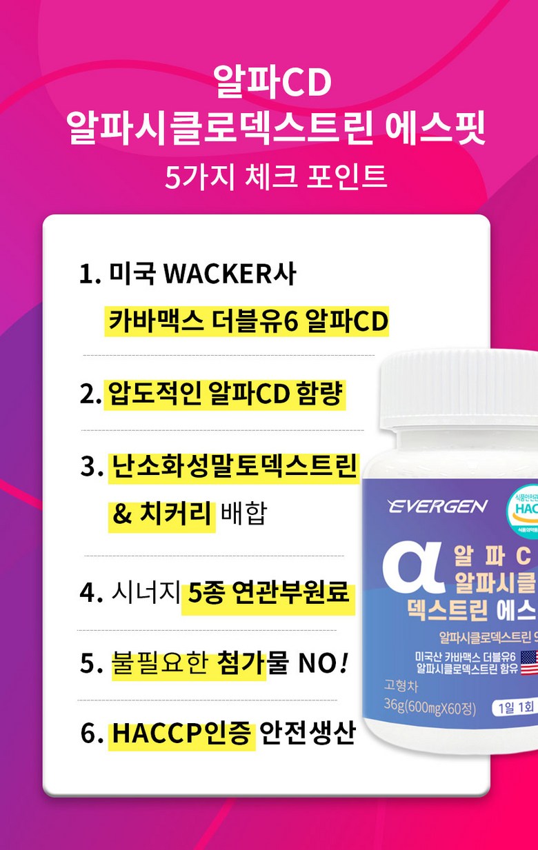 | 제품명 | 알파CD 알파시클로덱스트린 에스핏 | 식품의 유형 | 고형차 |