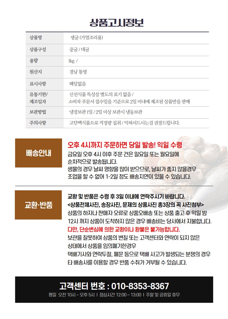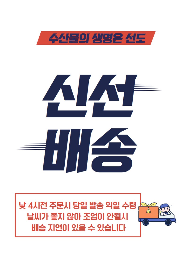 | 배송방법 | 신선/냉장/냉동 | 배송비 | 무료배송 - 도서산간 지역 배송불가 |