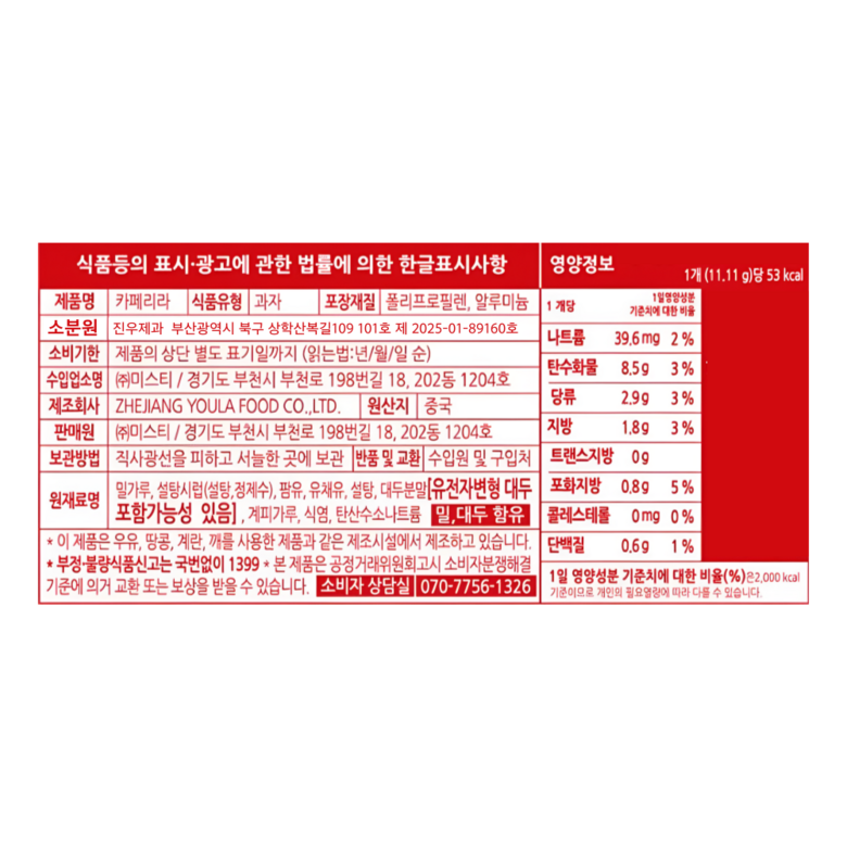 | 제품명 | 상품 상세페이지 참조 | 식품의 유형 | 상품 상세페이지 참조 |