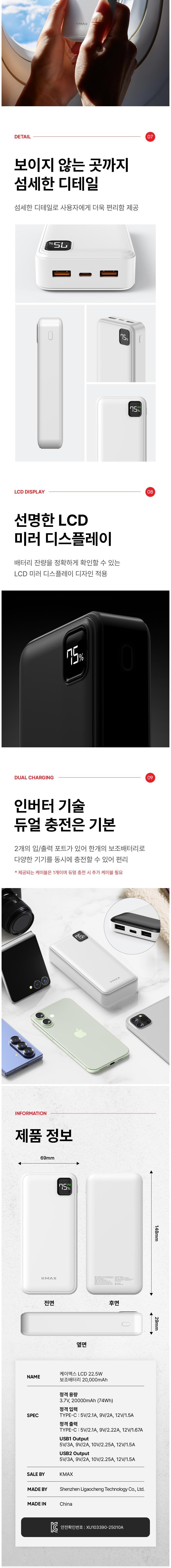 | 품명 및 모델명 | 보조배터리 / JBPB-20KPD-23-LG | KC 인증정보 | XU103390-25010A |