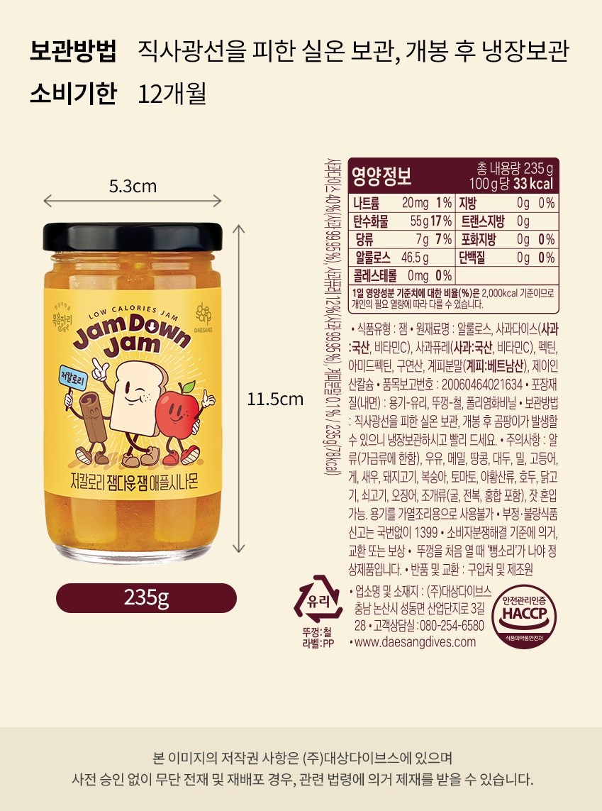 | 제품명 | 저칼로리 잼다운 잼 애플시나몬 | 식품의 유형 | 컨텐츠 참조 |