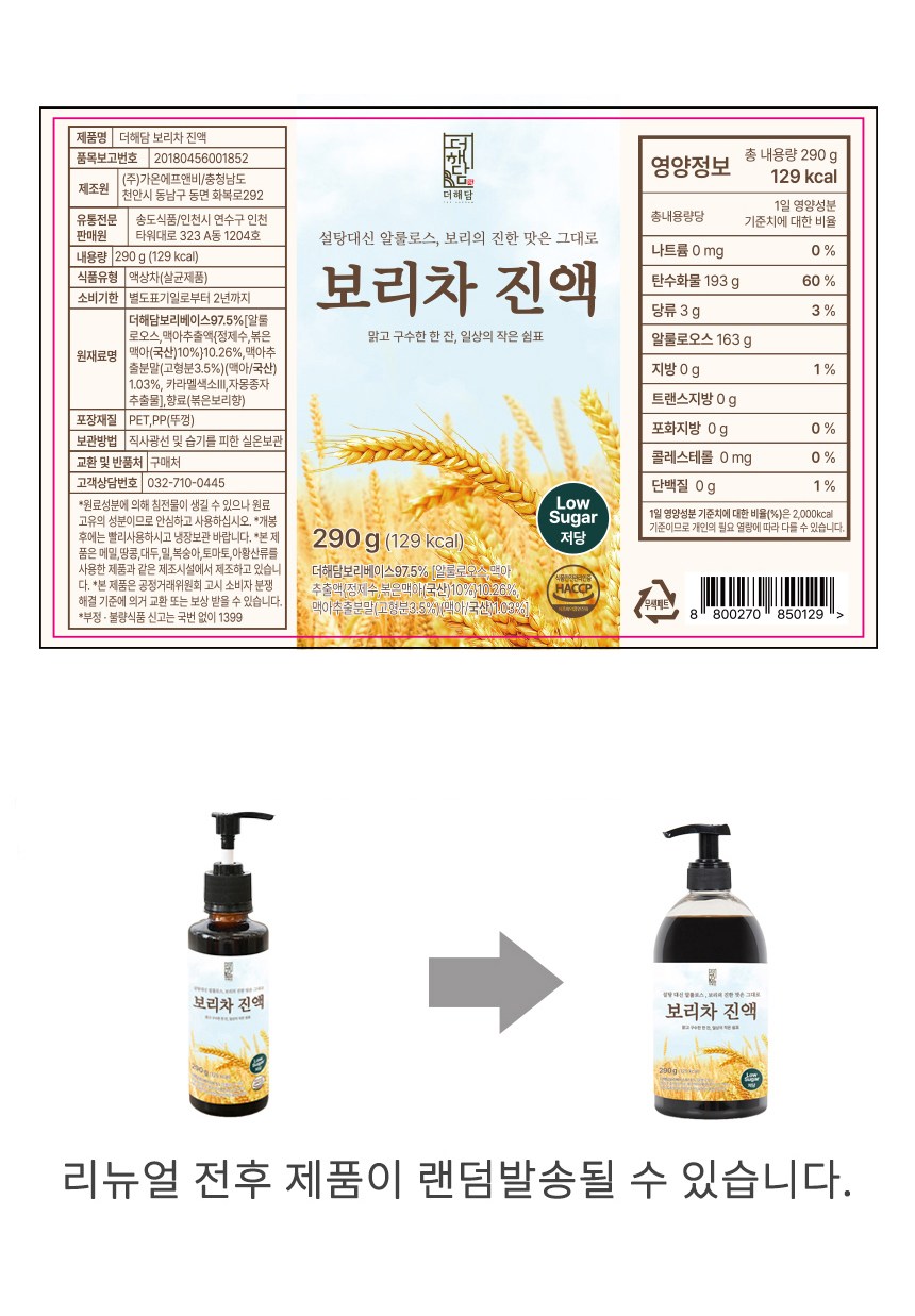 | 포장단위별 내용물의 용량(중량), 수량 | 290g, 1개 | 원재료명 및 함량 | 컨텐츠 참조 |