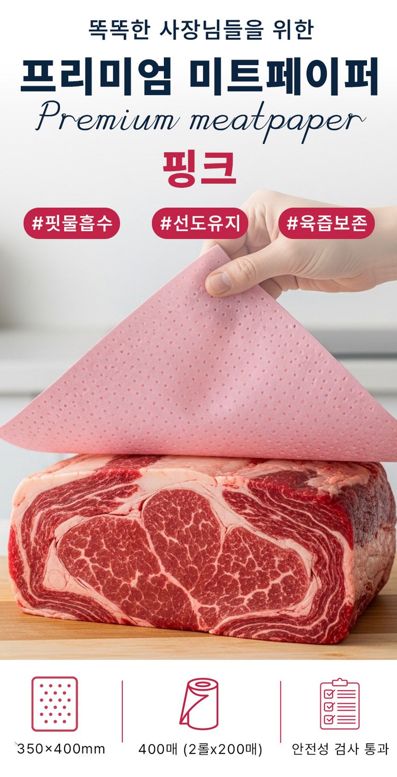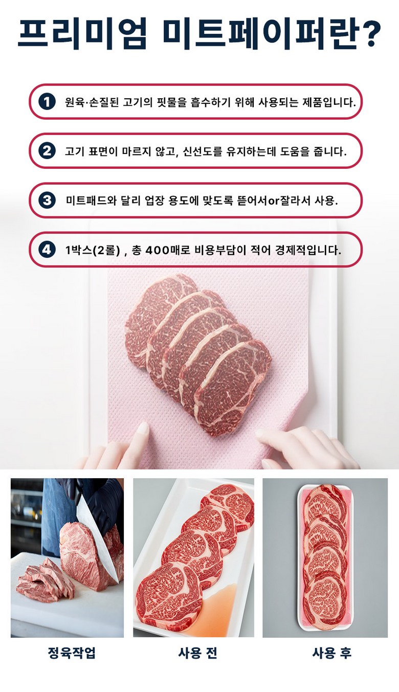 | 품명 및 모델명 | PP 프리미엄 미트페이퍼 | 인증/허가 사항 | 논산시 제 3호 |