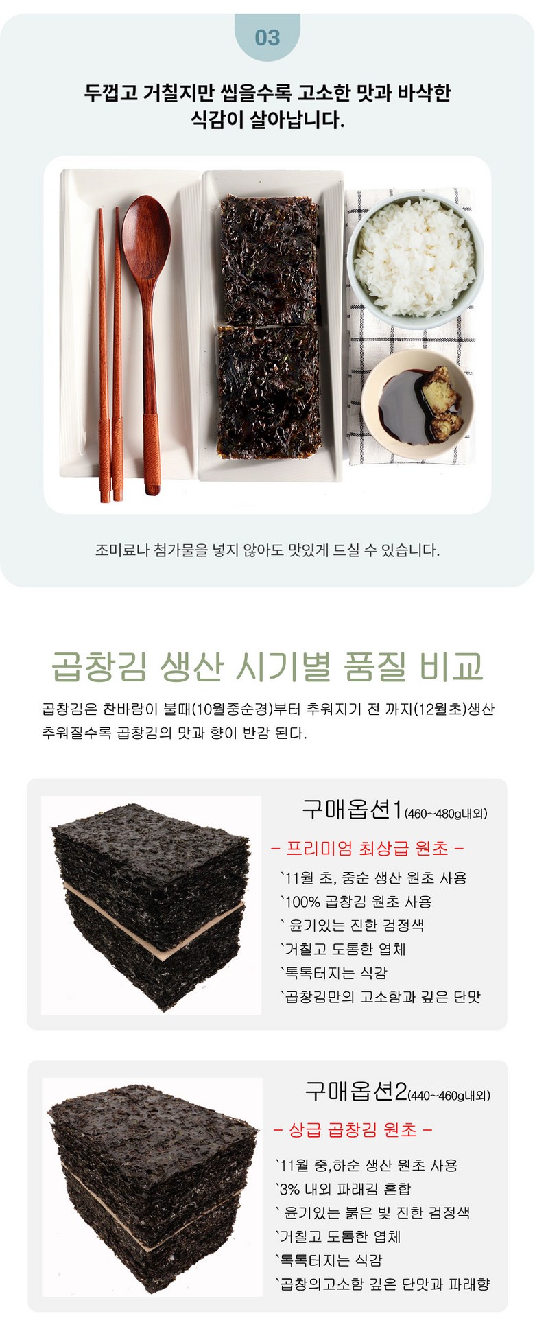 - 김 종류: 곱창김