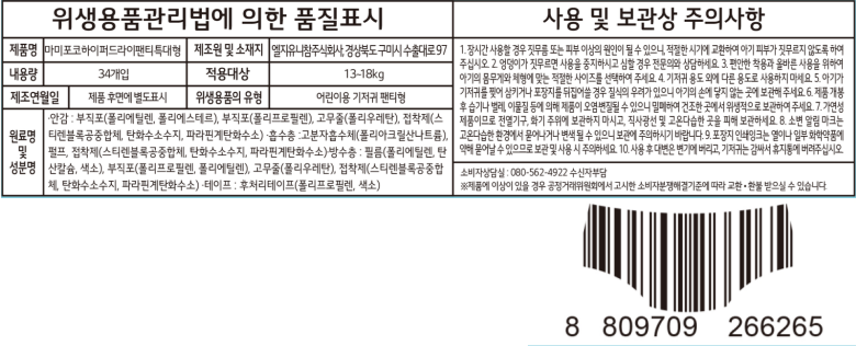 | 품명 및 모델명 | 마미포코 하이퍼드라이 팬티 특대형 | 인증/허가 사항 | 위생용품 |