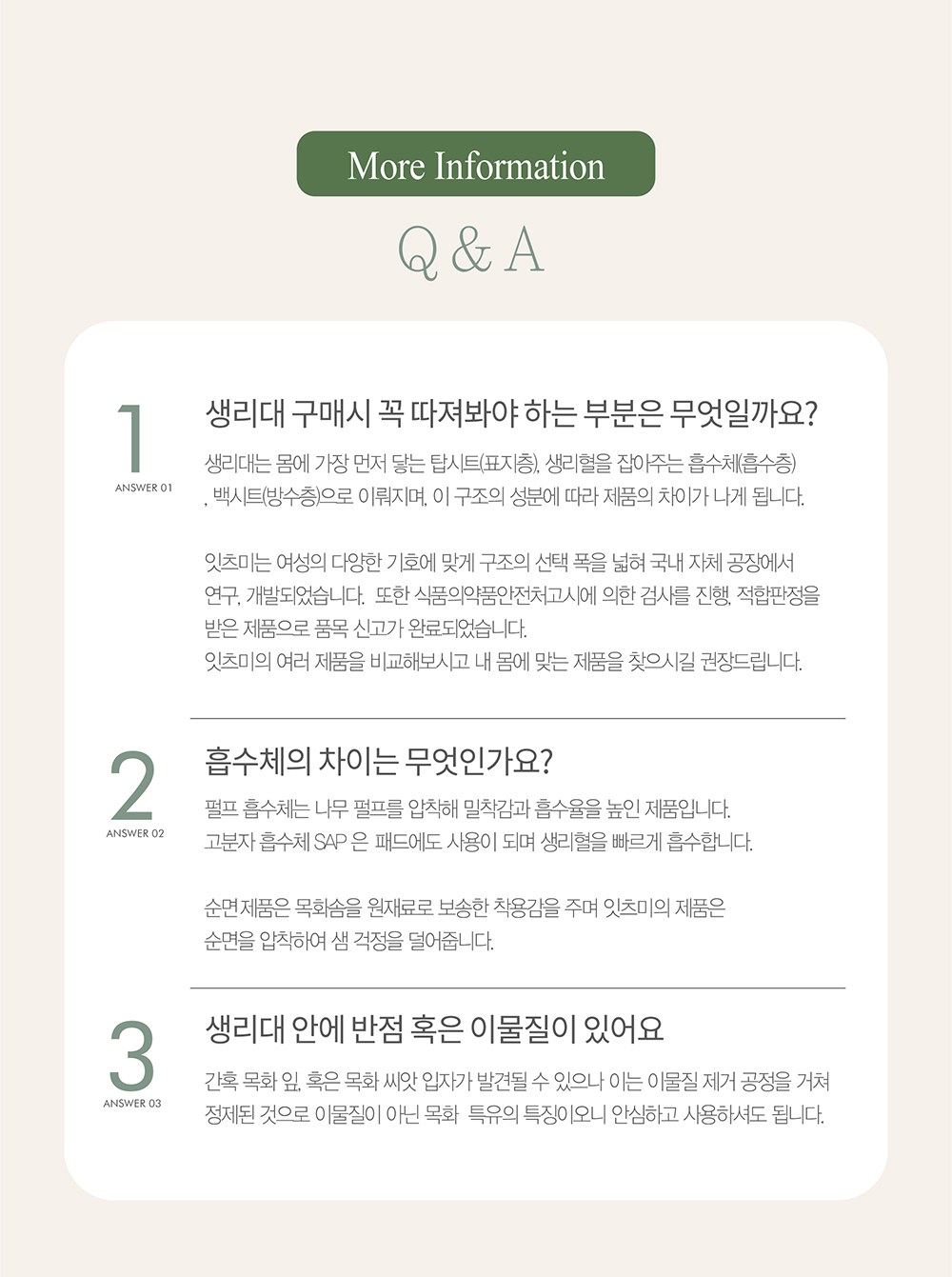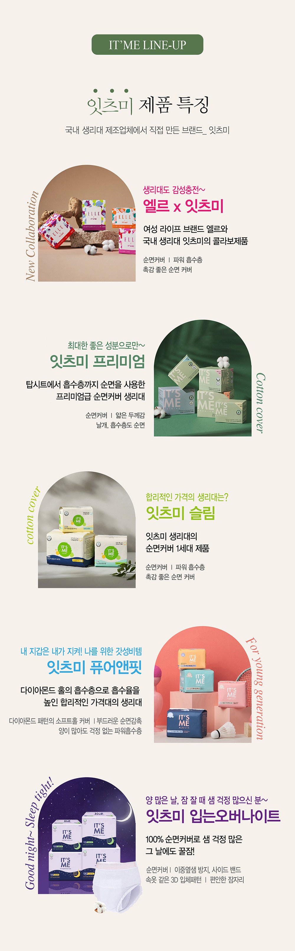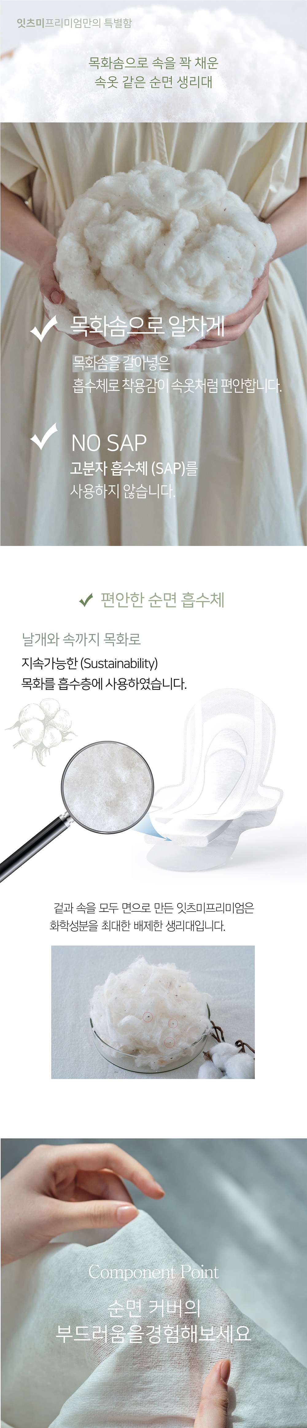 - 생리대커버소재: 유기농 순면