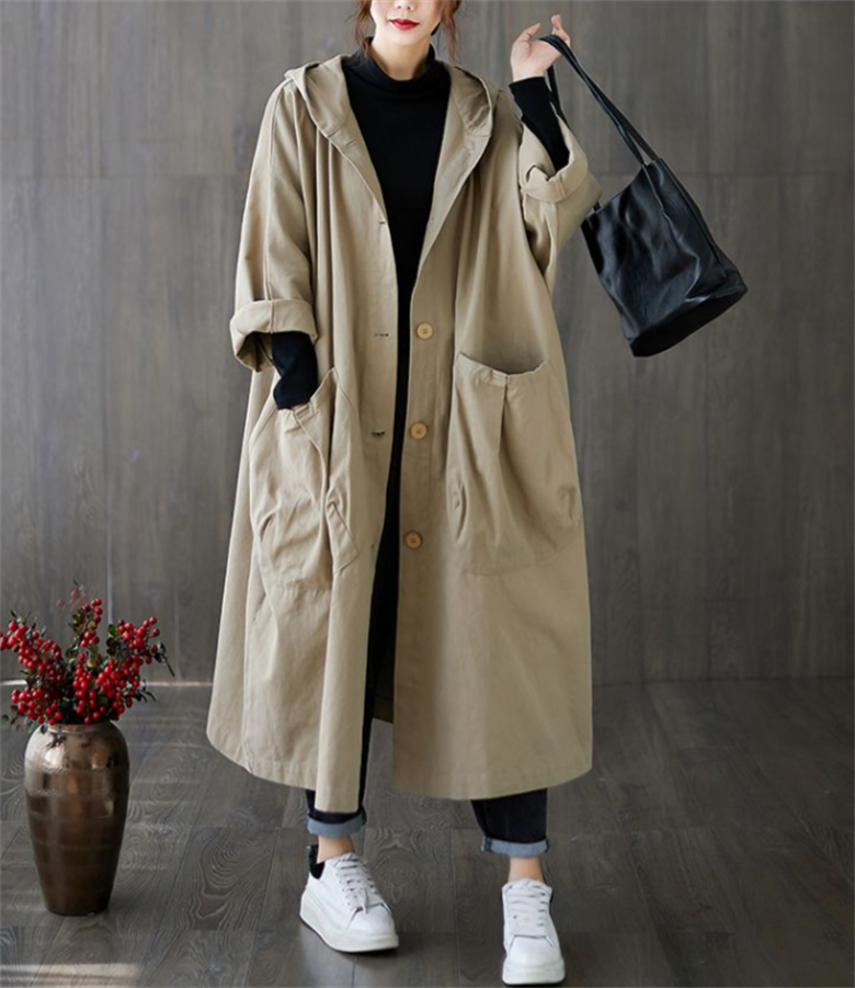 여성용 후드 트렌치코트