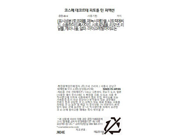 | 화장품제조업자, 화장품책임판매업자 및 맞춤형화장품판매업자 | 코세코퍼레이션 / 컨텐츠 참조 | 제조국 | 컨텐츠 참조 |