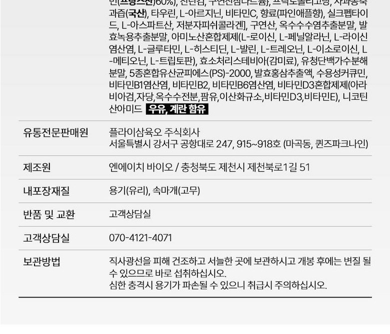 | 제품명 | 뉴트리플라이 알부민 | 식품의 유형 | 상품 상세페이지 참조 |