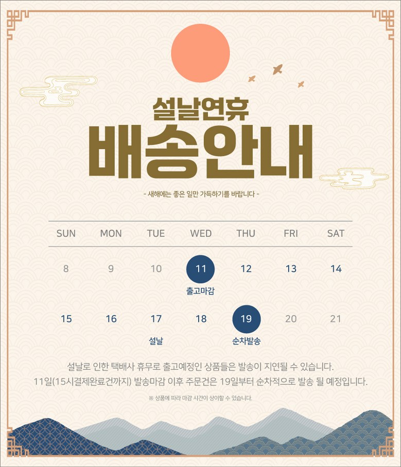 | 배송방법 | 순차배송 | 배송비 | 무료배송 - 도서산간 지역 배송불가 |