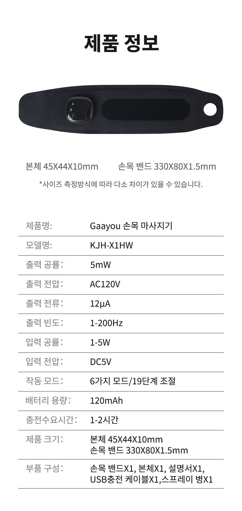 | 품명 및 모델명 | Gaayou 손목 마사지기 / KJH-X1HW | KC 인증정보 | XU102325-20001J / R-R-hou-KJH-X2HW |
