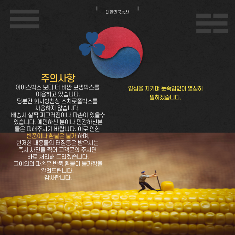 - ㆍ모니터 해상도의 차이로 인해 색상이나 이미지가 실제와 달라, 고객이 단순 변심으로 교환/반품을 무료로 요청하는 경우