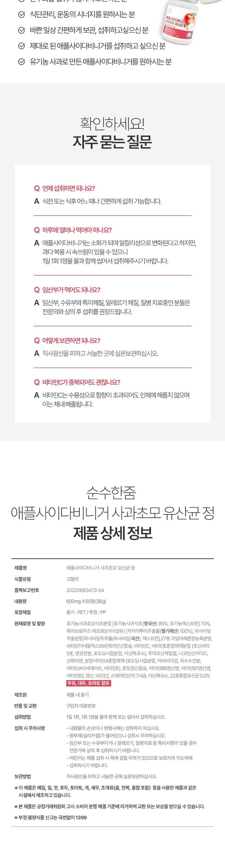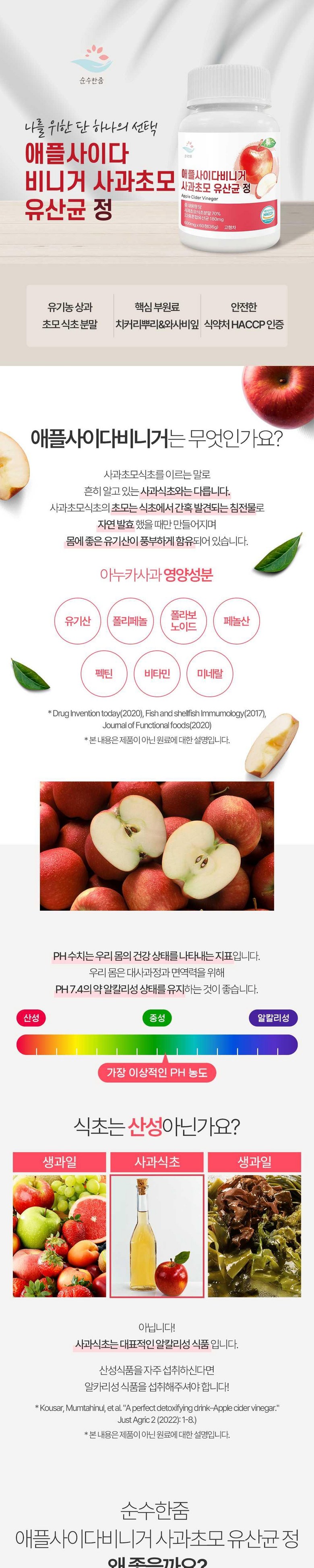 피엘에이치 애사비 애플사이다비니거 유기농 사과 초모 식초 100% 유산균 정, 60정, 3개