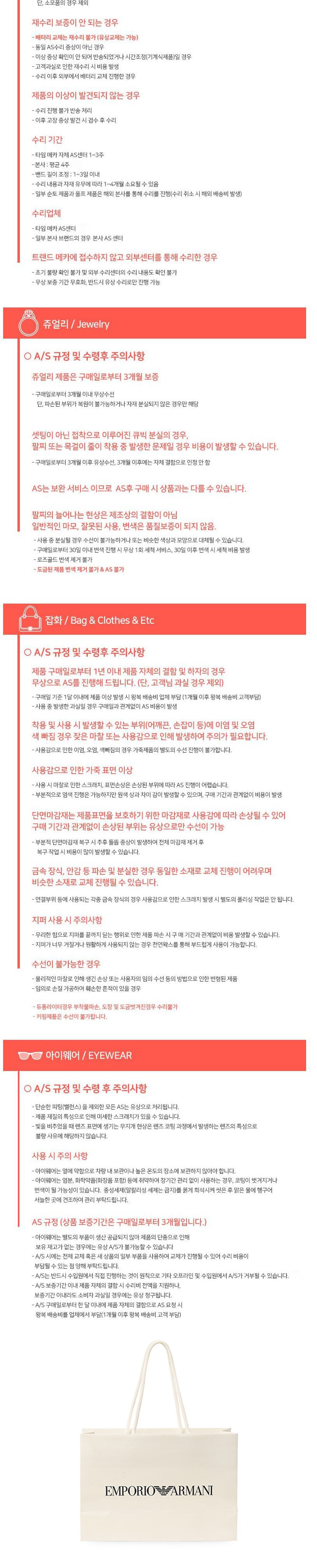 | 치수 | 컨텐츠 참조 | 제조자(수입자) | 아르마니 / (주)트랜드메카-국내본사 |