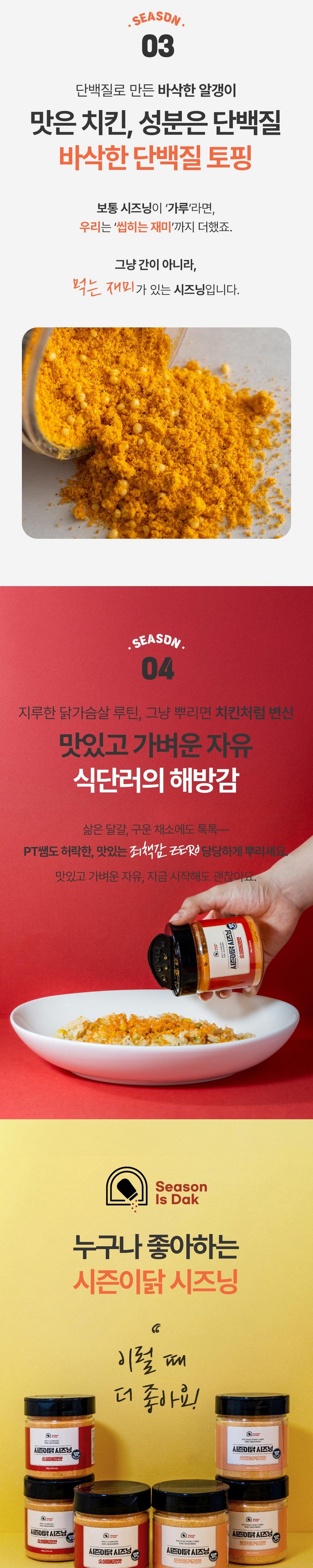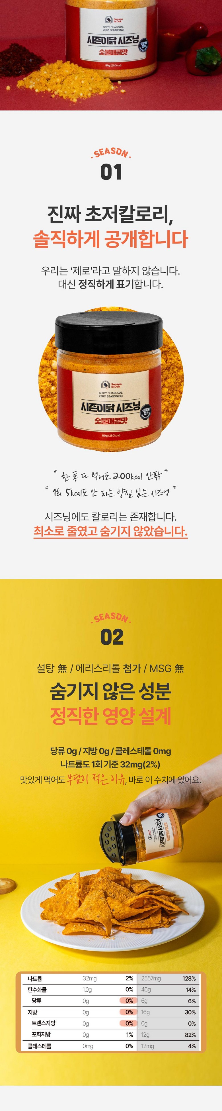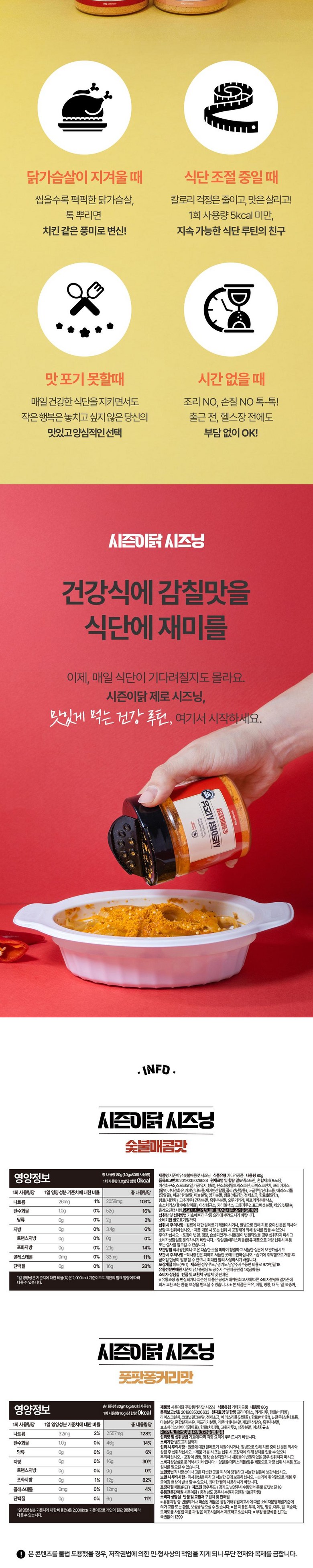 | 제품명 | 시즌이닭 숯붗매콤맛 시즈닝 | 식품의 유형 | 시즈닝 |