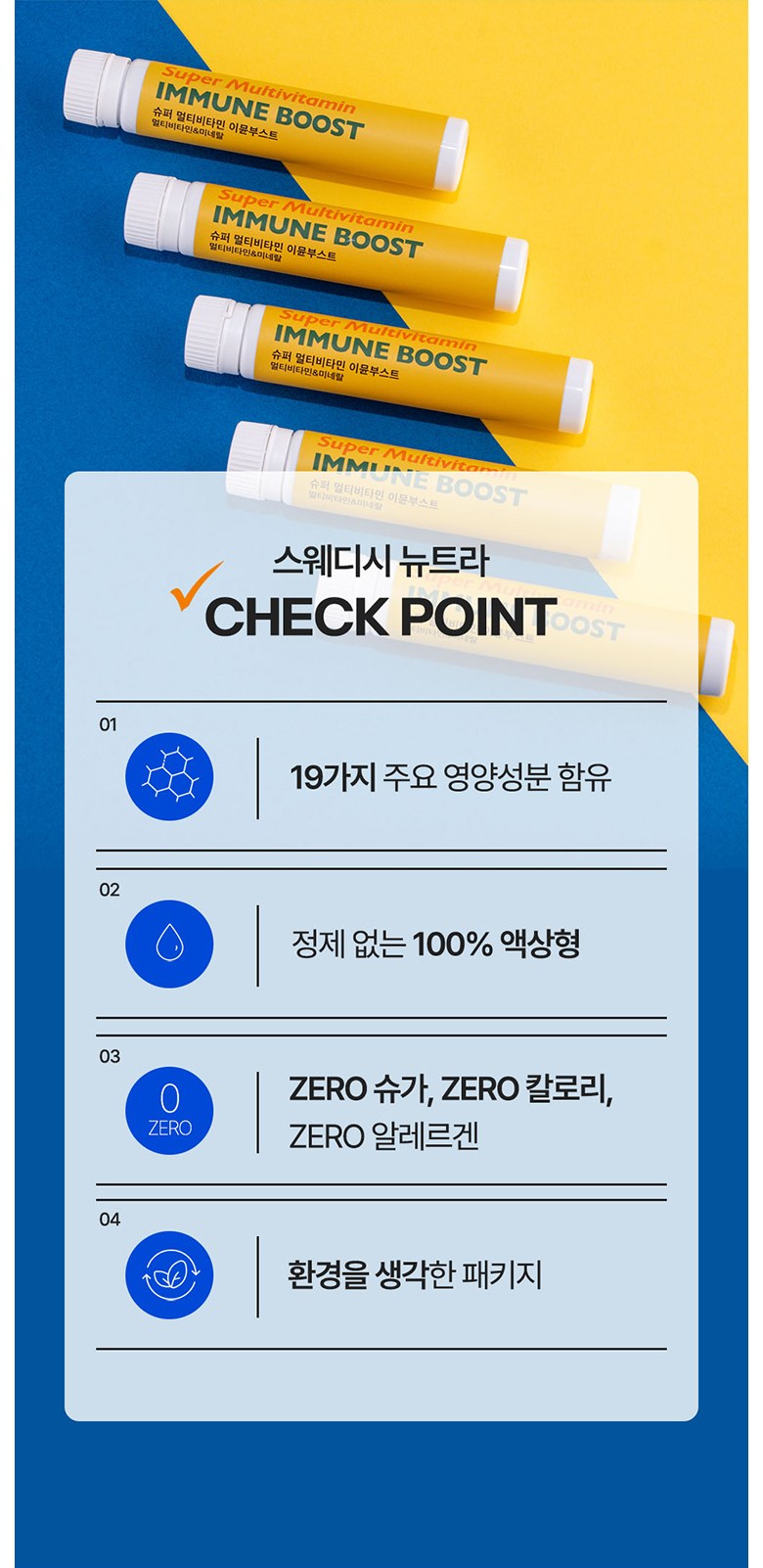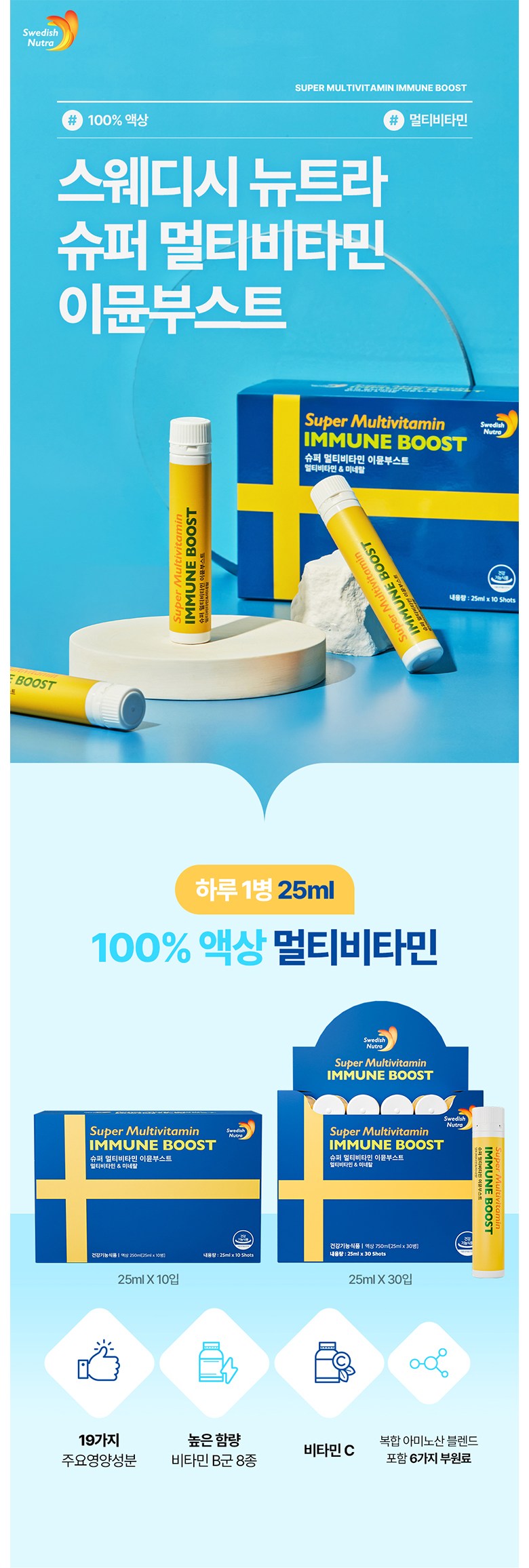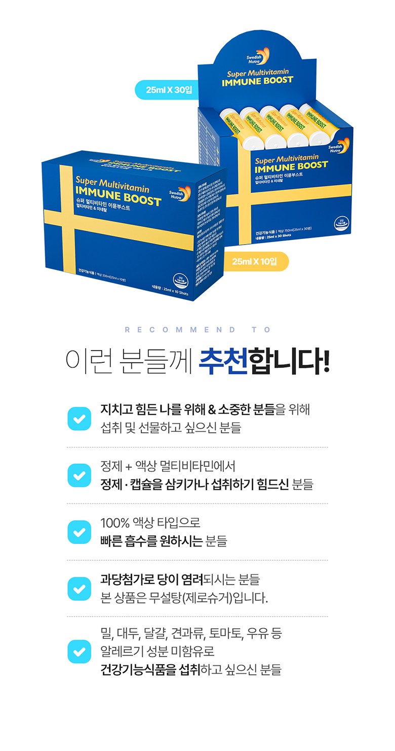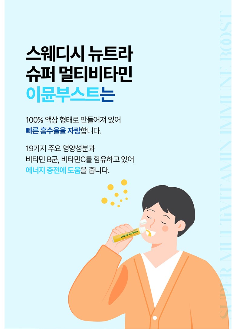 | 제품명 | 슈퍼 멀티비타민 이뮨부스트 | 제조업소의 명칭과 소재지 | Swedish Nutra AB / Made in SWEDEN |