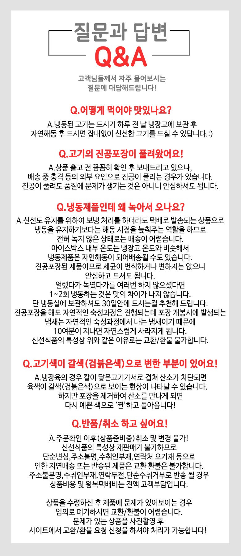 - ㆍ교환/반품에 관한 일반적인 사항은 판매자가 제시사항보다 관계법령이 우선합니다.