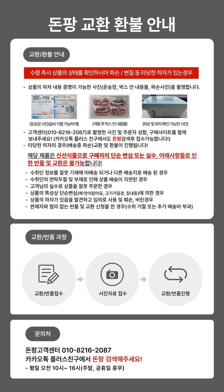 - ㆍ모니터 해상도의 차이로 인해 색상이나 이미지가 실제와 달라, 고객이 단순 변심으로 교환/반품을 무료로 요청하는 경우