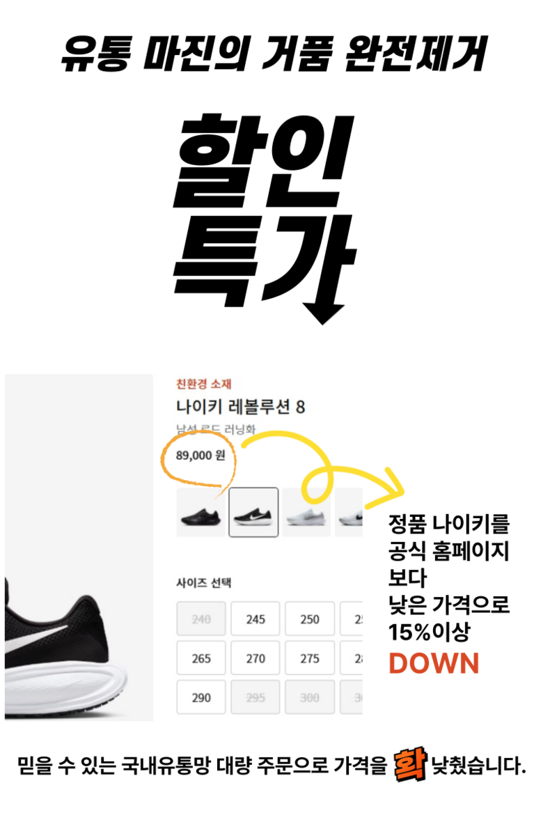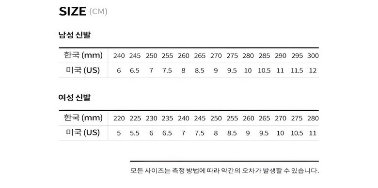 | 치수 | 225~300mm | 제조자(수입자) | 나이키 |