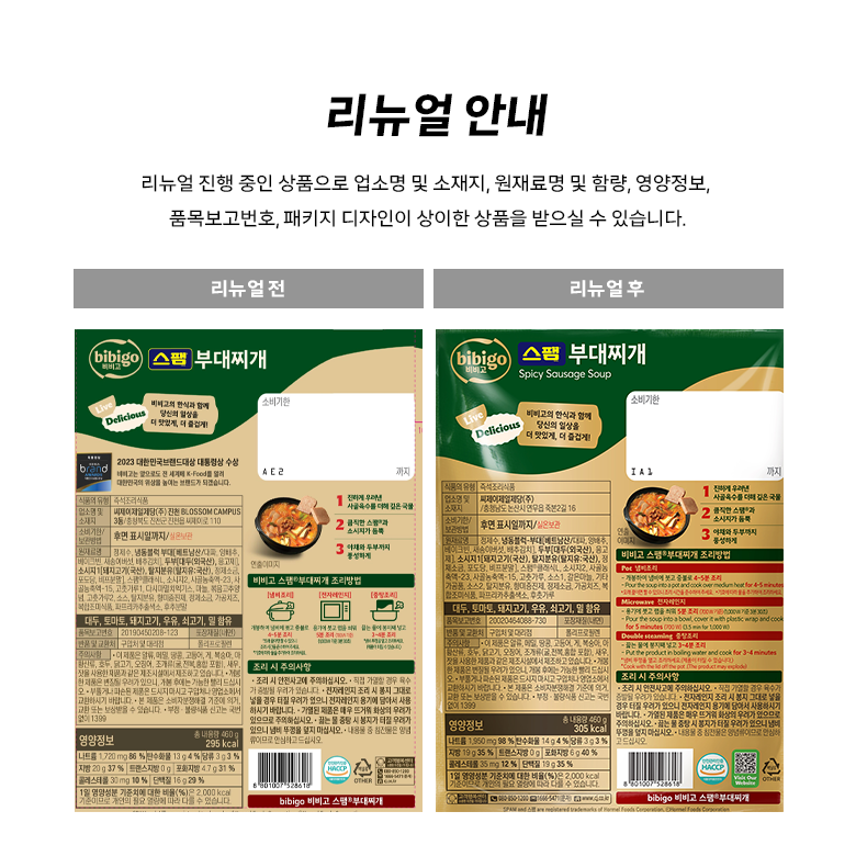 | 제품명 | bibigo 비비고 스팸®부대찌개 | 식품의 유형 | 컨텐츠 참조 |