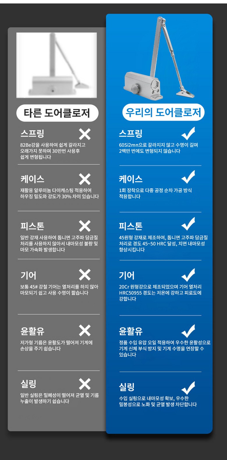 ·핵심 원칙: 회전 저항을 줄이기 위해 도어 폐쇄기 본체와 도어 축 중심선의 수평 거리는 ≤25cm이어야 함