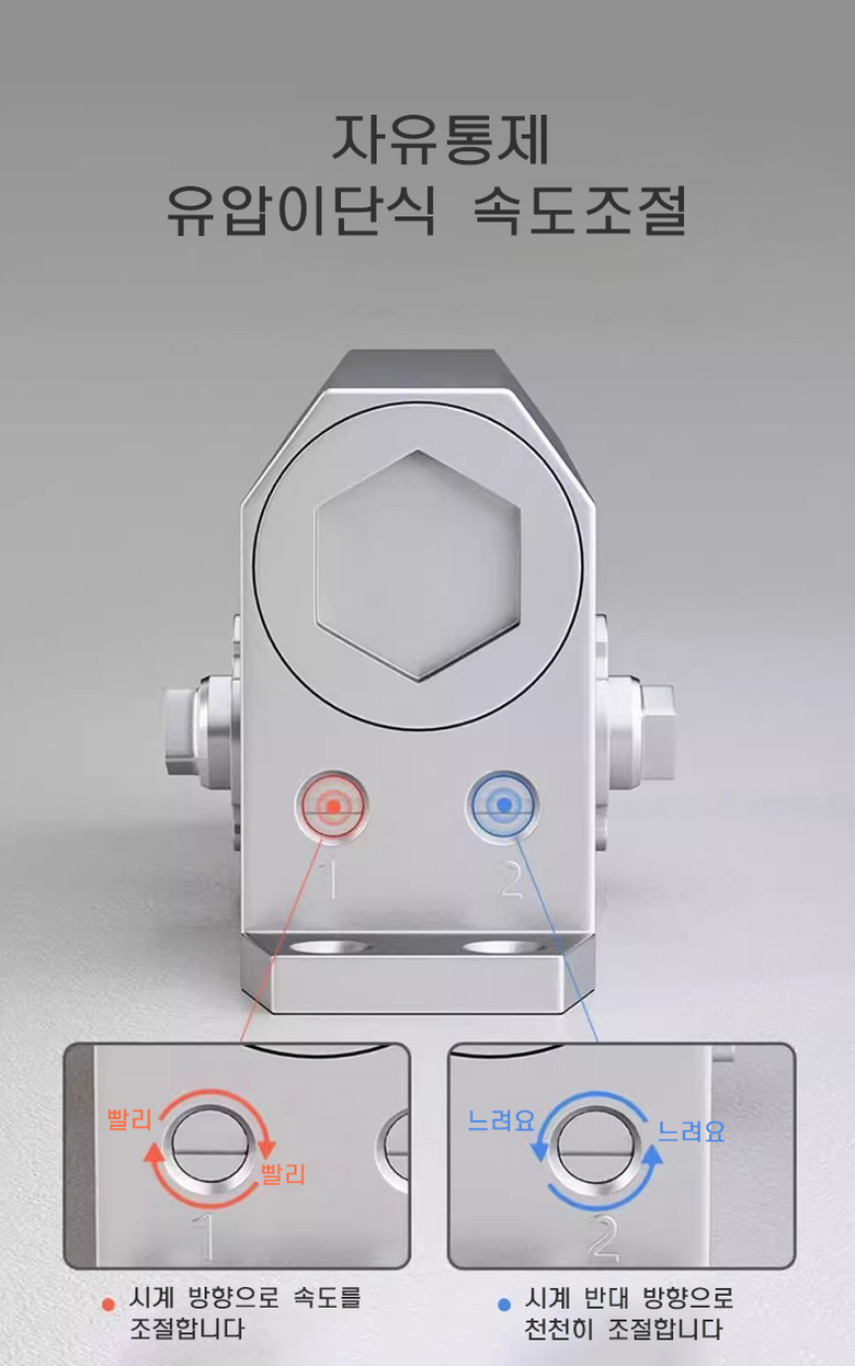 ·육각렌치를 사용하여 매회 1/4회전만 하면 시계방향으로 속도가 느려지고 완충이 강화되어 반시계방향으로 빨라집니다.