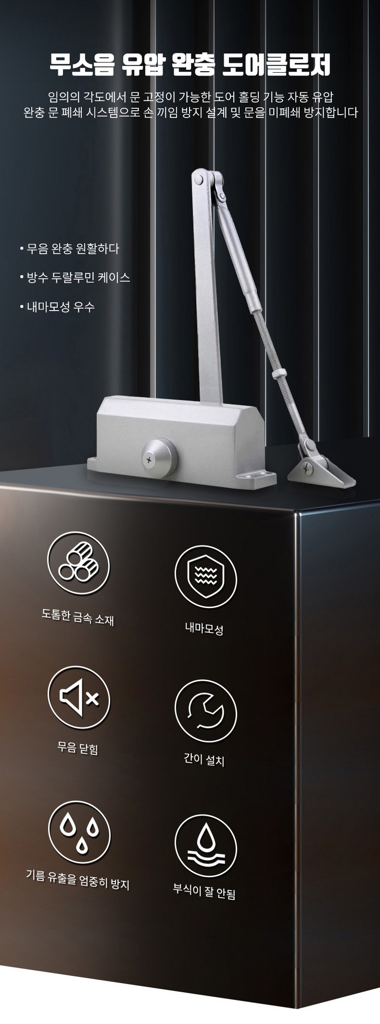 ·위치 기반: 도어 클로저에 부착된 설치 템플릿을 사용하여 문틀과 문짝에 부착하고 모든 천공 지점을 정확하게 표시하여 수동 오류를 방지합니다.