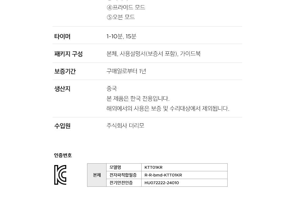 | 품명 및 모델명 | 전기오븐기기 / KTT01KR( KTT01KR-BK) | KC 인증정보 | HU072222-24010, R-R-bmd-KTT01KR |