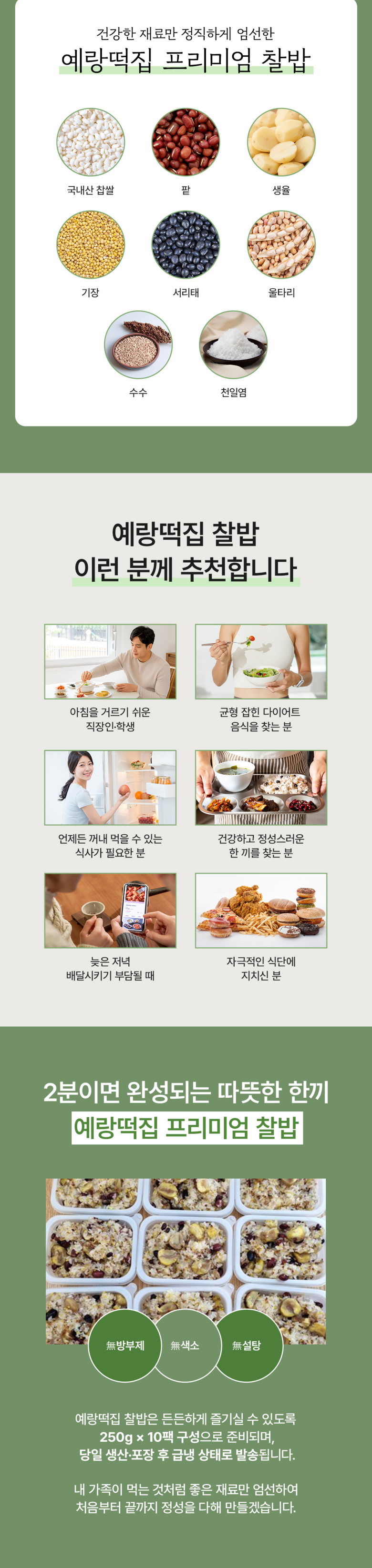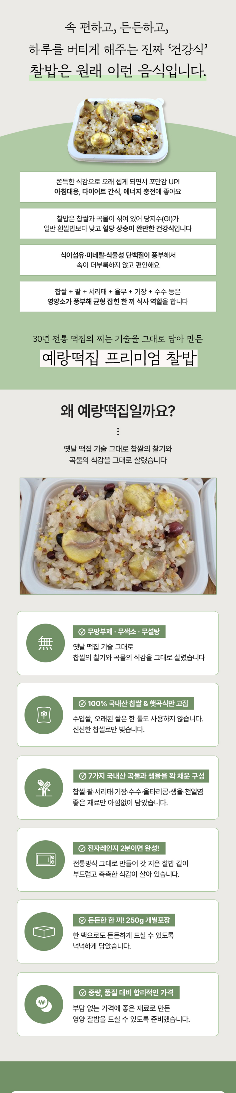 예랑떡집 찰밥 오곡밥 회복식 당뇨식 건강식 저포드맵 다이어트 영양식단 건강한 식사대용 국산찹쌀 무방부제 찰밥250g 10팩