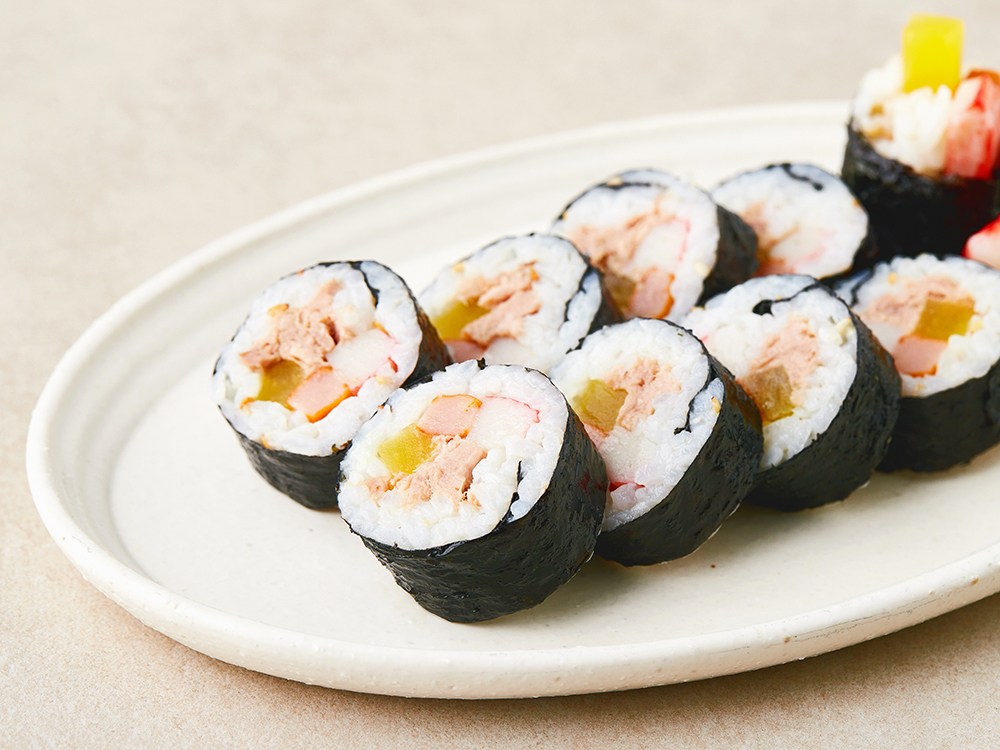 맛있는 참치김밥 5줄을 뚝딱 만들 수 있는 김밥 세트예요. 게맛살, 참치, 단무지, 햄, 김이 모두 포함되어 있어 별다른 준비가 필요 없지요. 밥을 얇게 편 다음 재료를 넣고 돌돌 말아주면 식감이 풍성한 김밥이 완성된답니다. 재료를 하나하나 고르고 손질하는 과정 없이도, 고소한 풍미가 가득한 참치 김밥을 즐길 수 있어요.