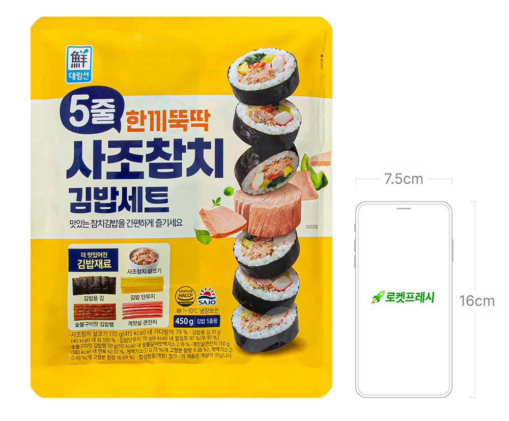 김밥 5줄을 만들 수 있는 재료로 구성구성 정보