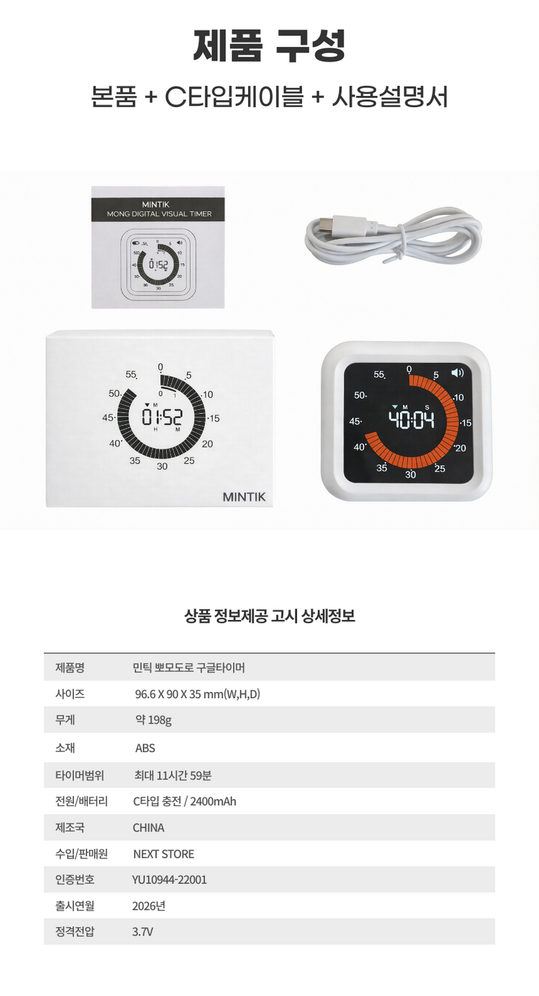 | 품명 및 모델명 | 민틱 구글 타이머 | 재질 | 상품 상세페이지 참조 |