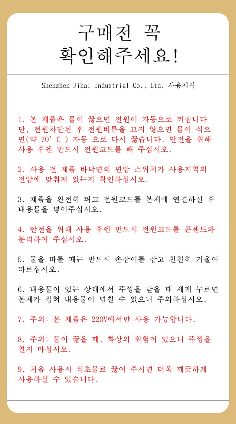 | 품명 및 모델명 | 캠핑용 전기주전자 | KC 인증정보 | 해당없음 |