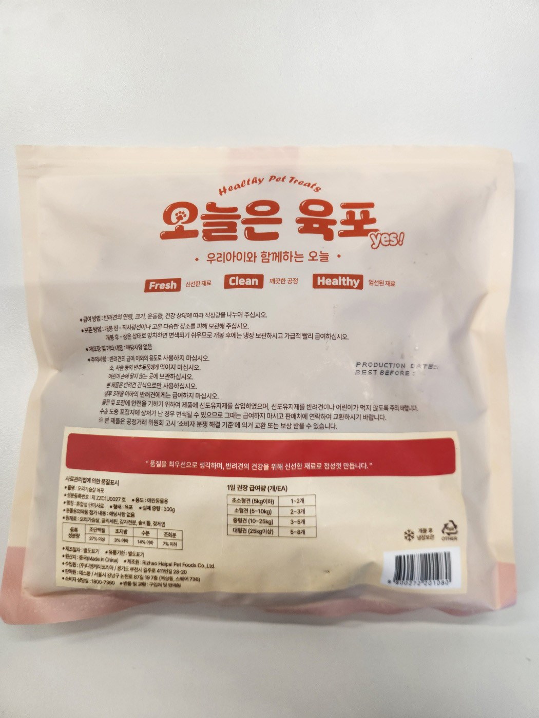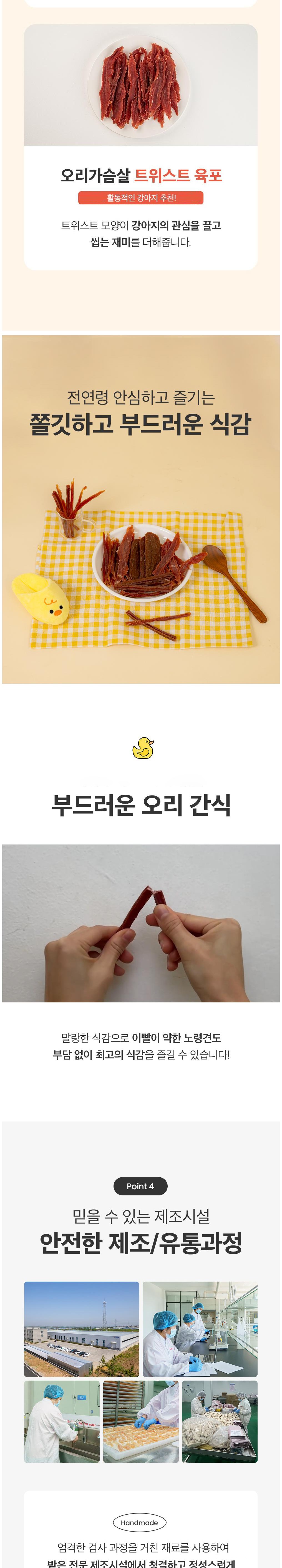 | 품명 및 모델명 | 오리가슴살 육포 | 인증/허가 사항 | 사료관리법에 따른 성분등록번호 : 컨텐츠 참조 |