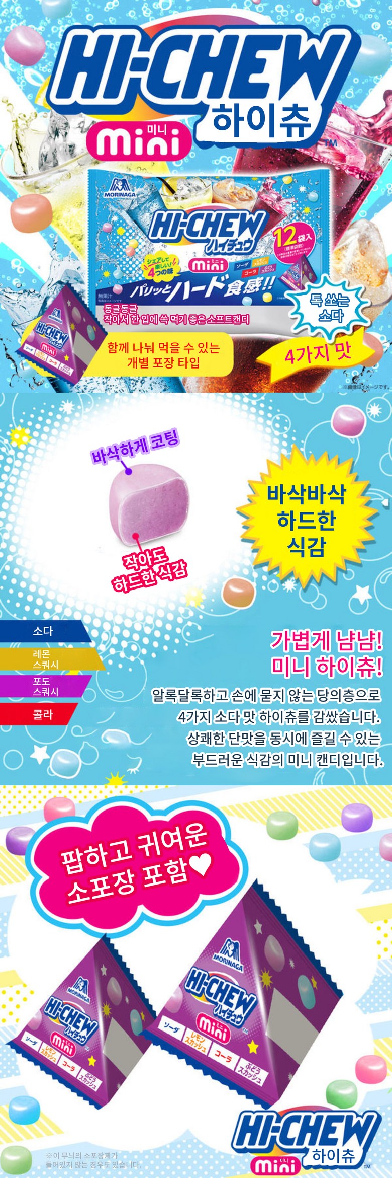 하이츄 미니 소다 + 레몬스쿼시 + 포도스쿼시 + 콜라 12개입