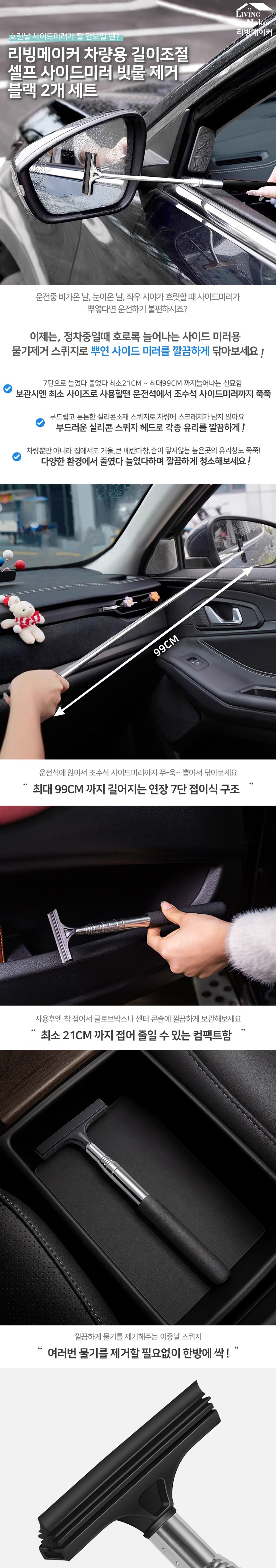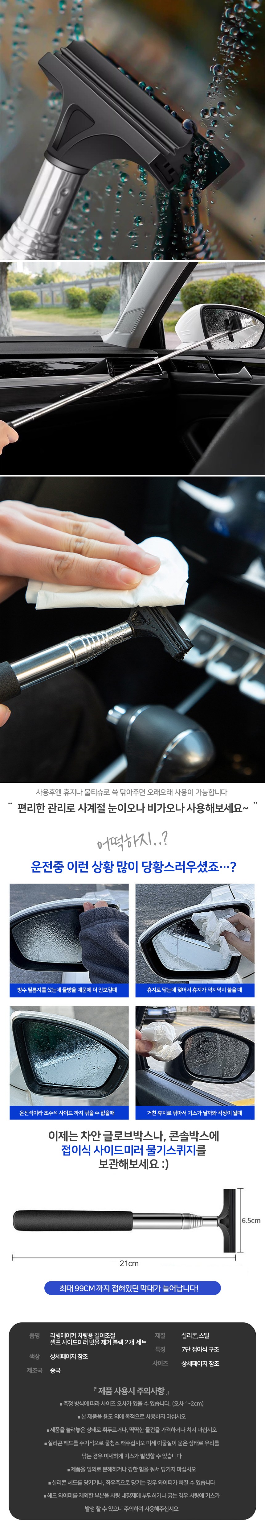 | 품명 및 모델명 | 리빙메이커 차량용 길이조절 셀프 사이드미러 빗물 제거 2개 1개 | 동일모델 출시년월 | 업체미제공 |