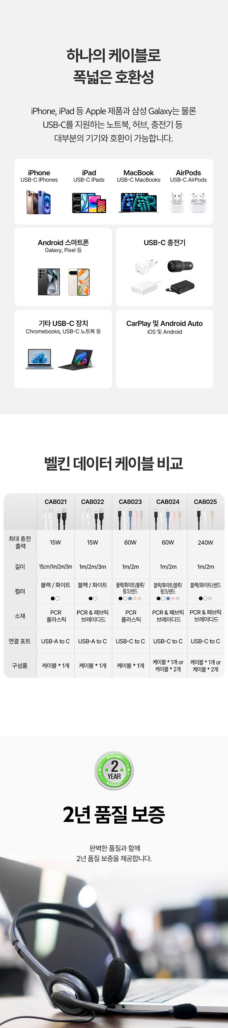 | 품명 및 모델명 | 벨킨 60W USB-C to C 브레이디드 고속 충전 케이블 2M 화이트 USB CAB024fq2MWH | 인증/허가 사항 | 해당없음 |