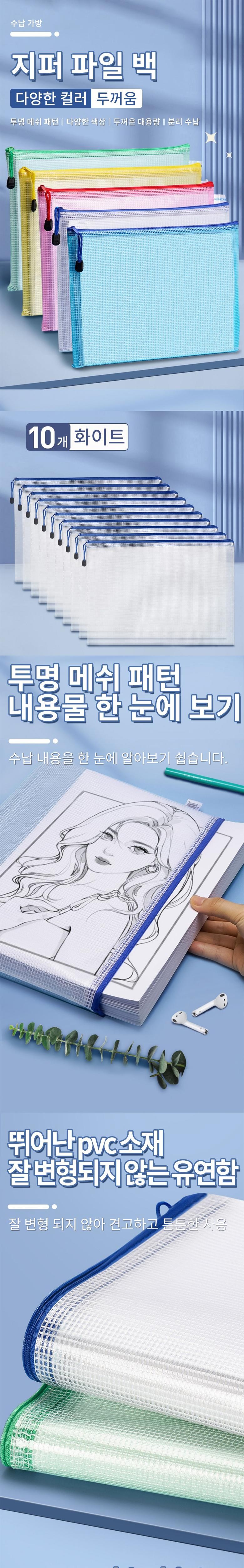 BuyChoo 지퍼 클리어 메쉬 파일 백, 화이트, 10개
