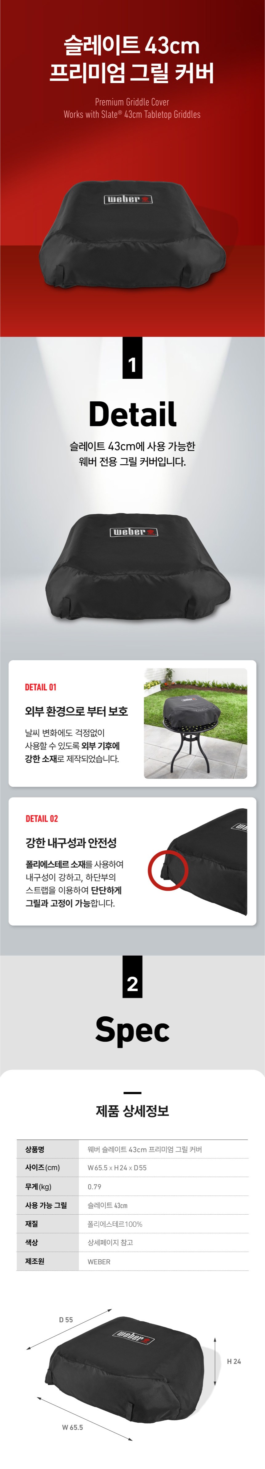 | 품명 및 모델명 | 웨버 슬레이트 43cm 프리미엄 그릴 커버 | KC 인증정보 | 해당없음 |