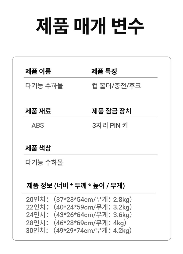| 품명 및 모델명 | 기내용 캐리어 | 인증/허가 사항 | 인증 사항이 아닙니다 |