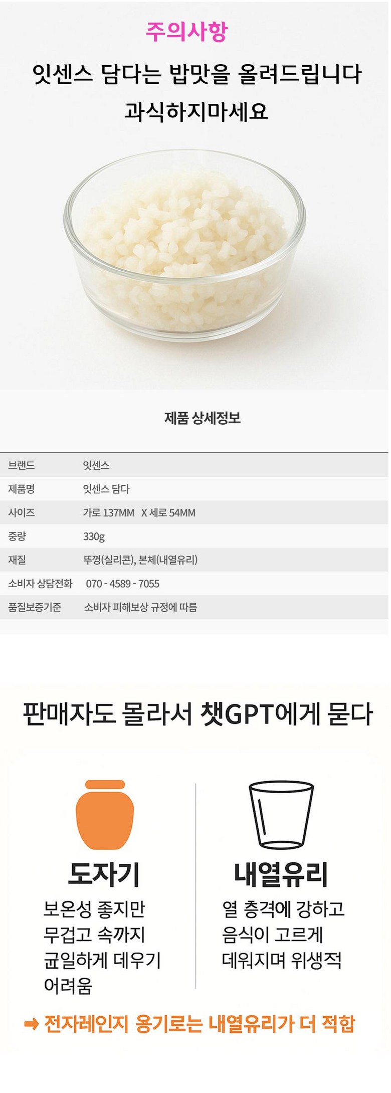 | 품명 및 모델명 | 잇센스 | 재질 | 실리콘, 내열유리 |