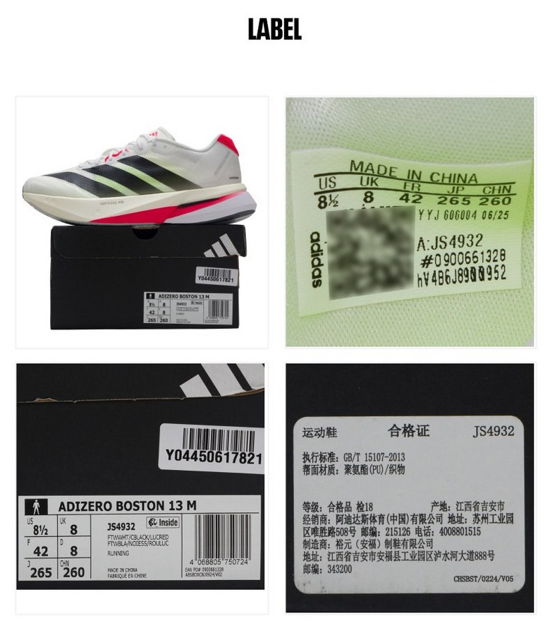| 치수 | 상품 상세페이지 참조 | 제조자(수입자) | Adidas sports (China) Co., Ltd |