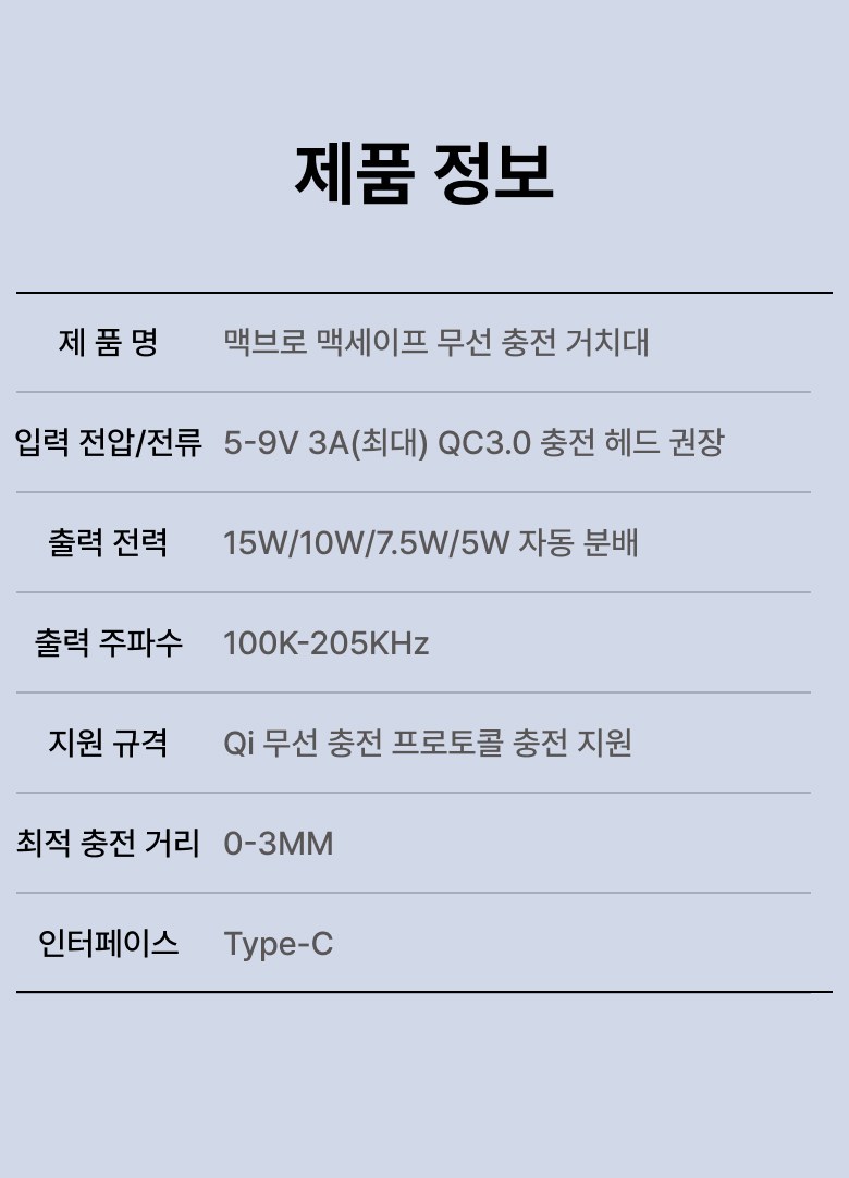 | 품명 및 모델명 | 더블콕 맥세이프 충전 거치대 / AM15W-1C | 동일모델 출시년월 | 2025년 6월 |