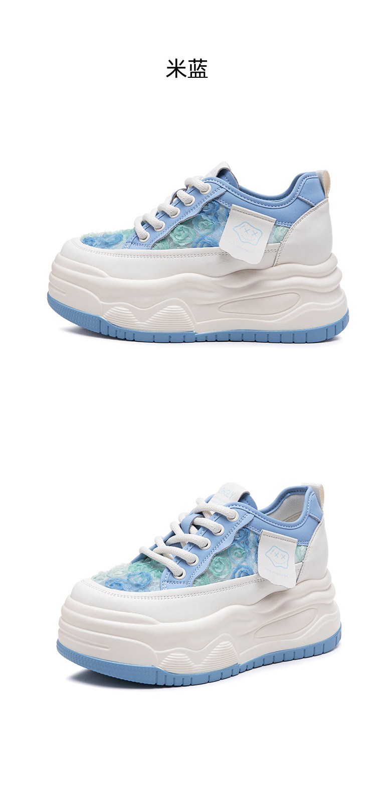 | 제품의 주소재(운동화인 경우에는 겉감,안감을 구분하여 표시) | 소가죽/자수망 | 색상 | white,bule |