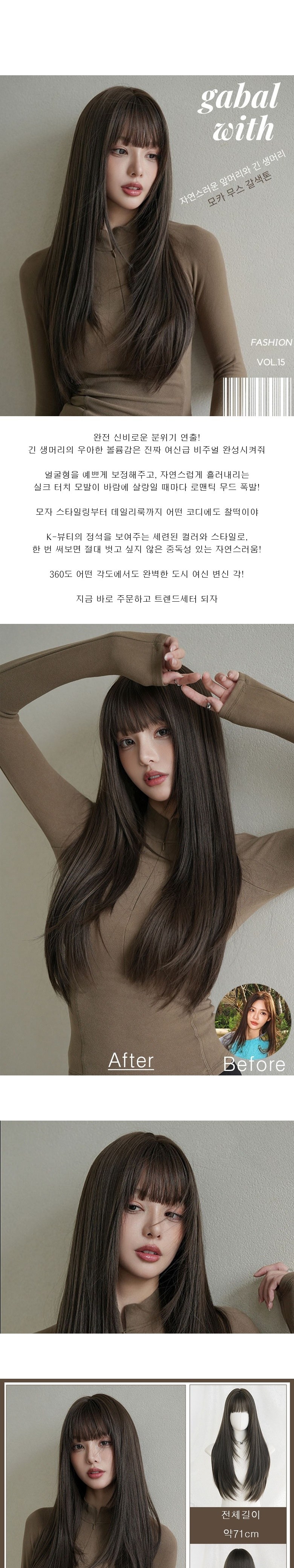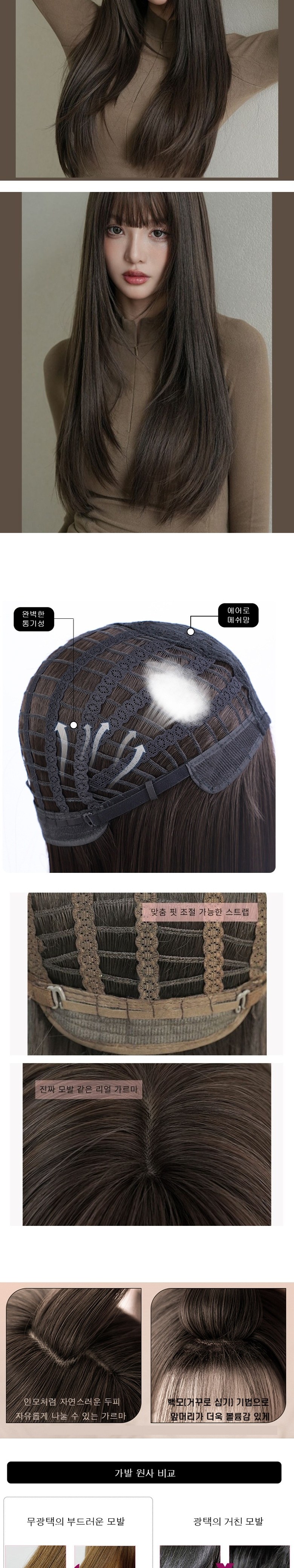 | 품명 및 모델명 | 가발위드 여성 가발 긴머리 스트레이트 앞머리 있는 통가발 모카프린지 | 인증/허가 사항 | 해당없음 |